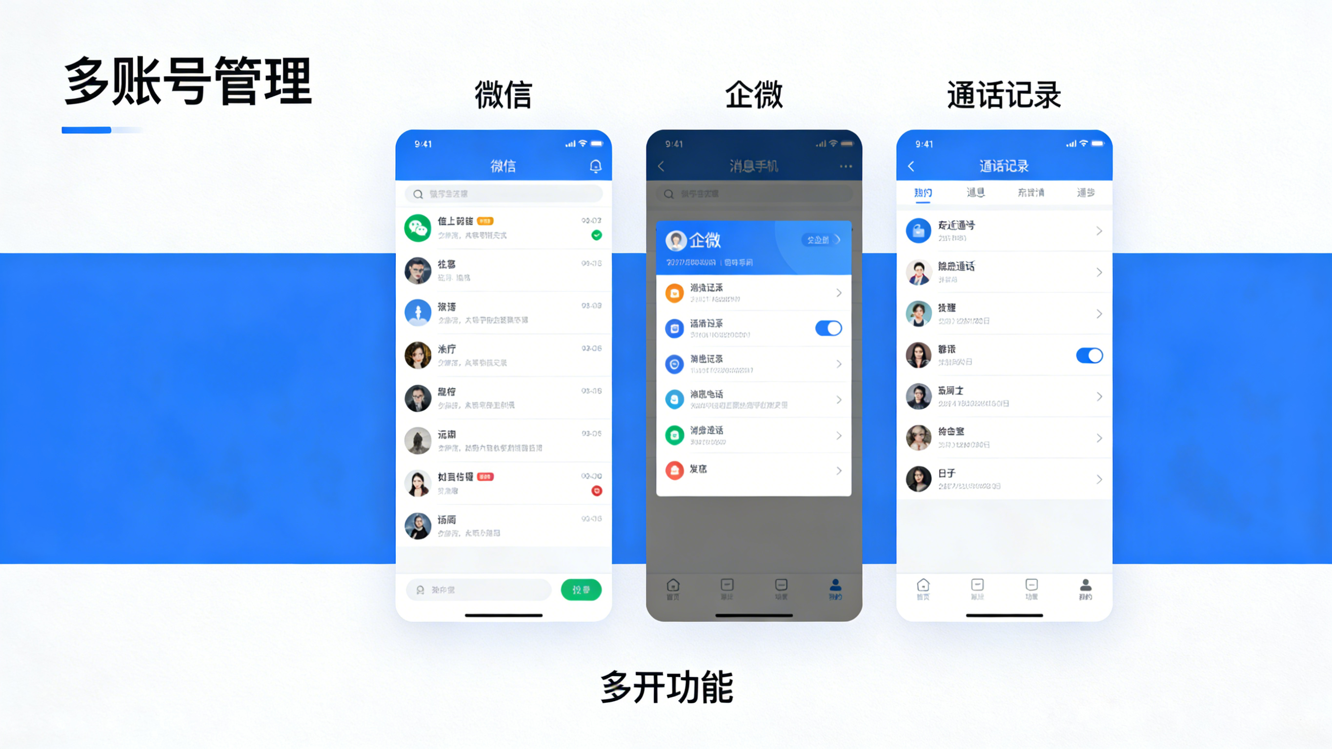 自动录音所有通话内容,支持实时监听和历史录音回放,通话记录完整留存。